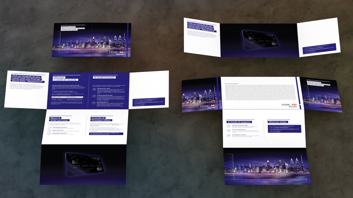 Concept, look and feel, brand guidelines for digital and print, email templates, and direct mail for the HSBC Premier Elite Credit Card.