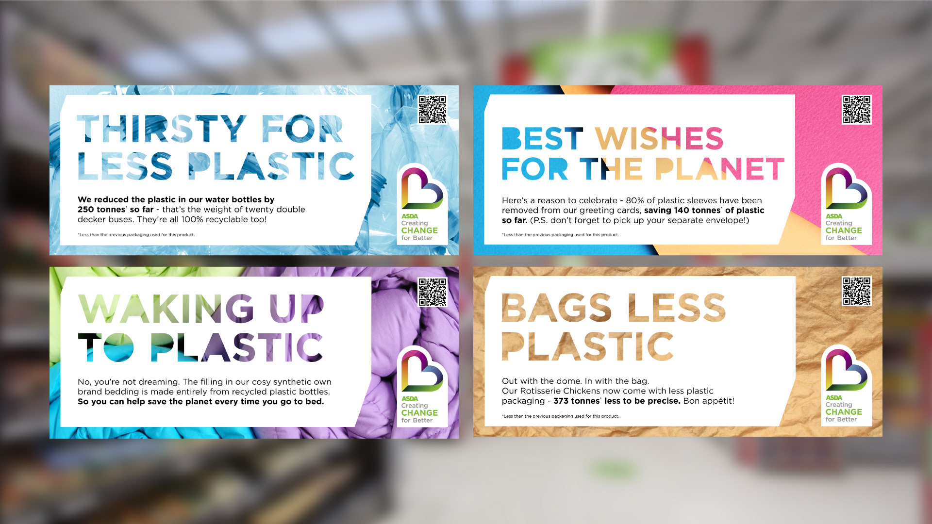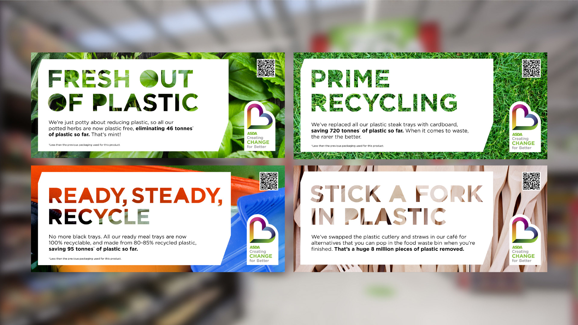 Design development and implementation for Asda's sustainability efforts and the launch of its first sustainability-focused store.