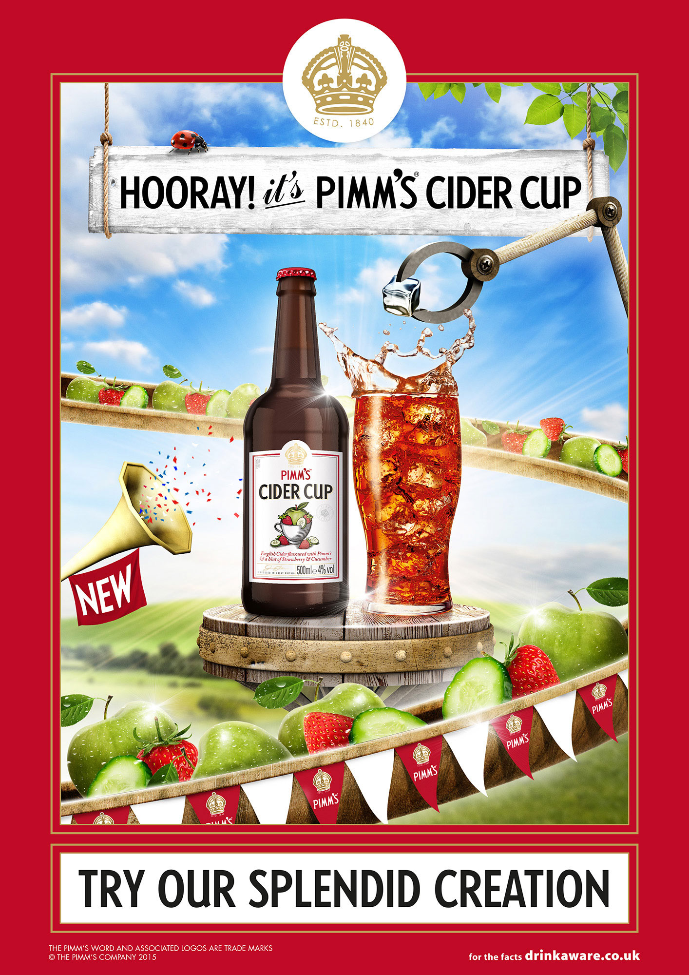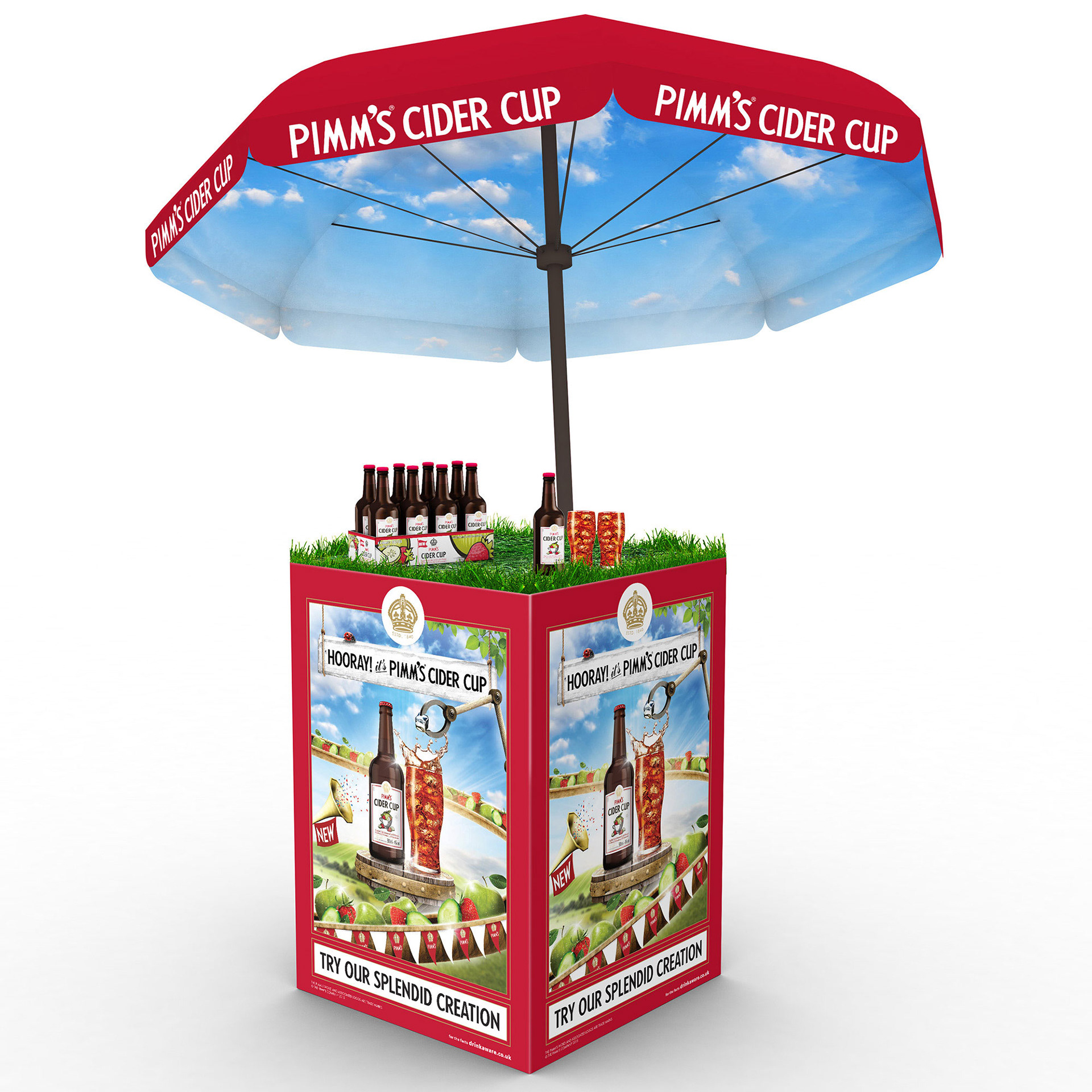 Key visual and POS adaptations for the launch of the brand new Pimm's Cider Cup.